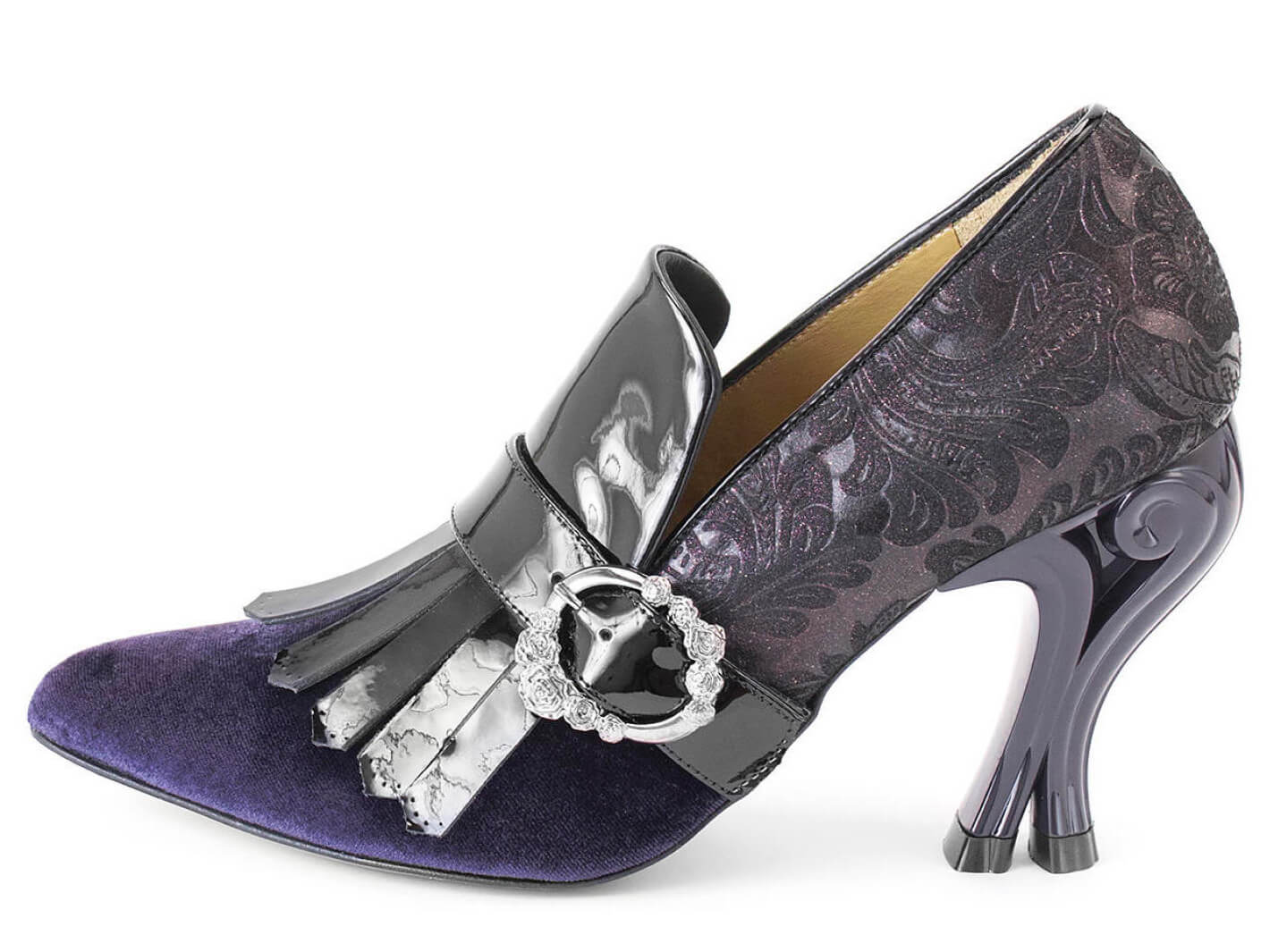 A classic high-heel made with a cemented construction, a four-inch scrolled heel that was developed and modeled in-house with our 3d design developer. All uppers follow a similar style direction.