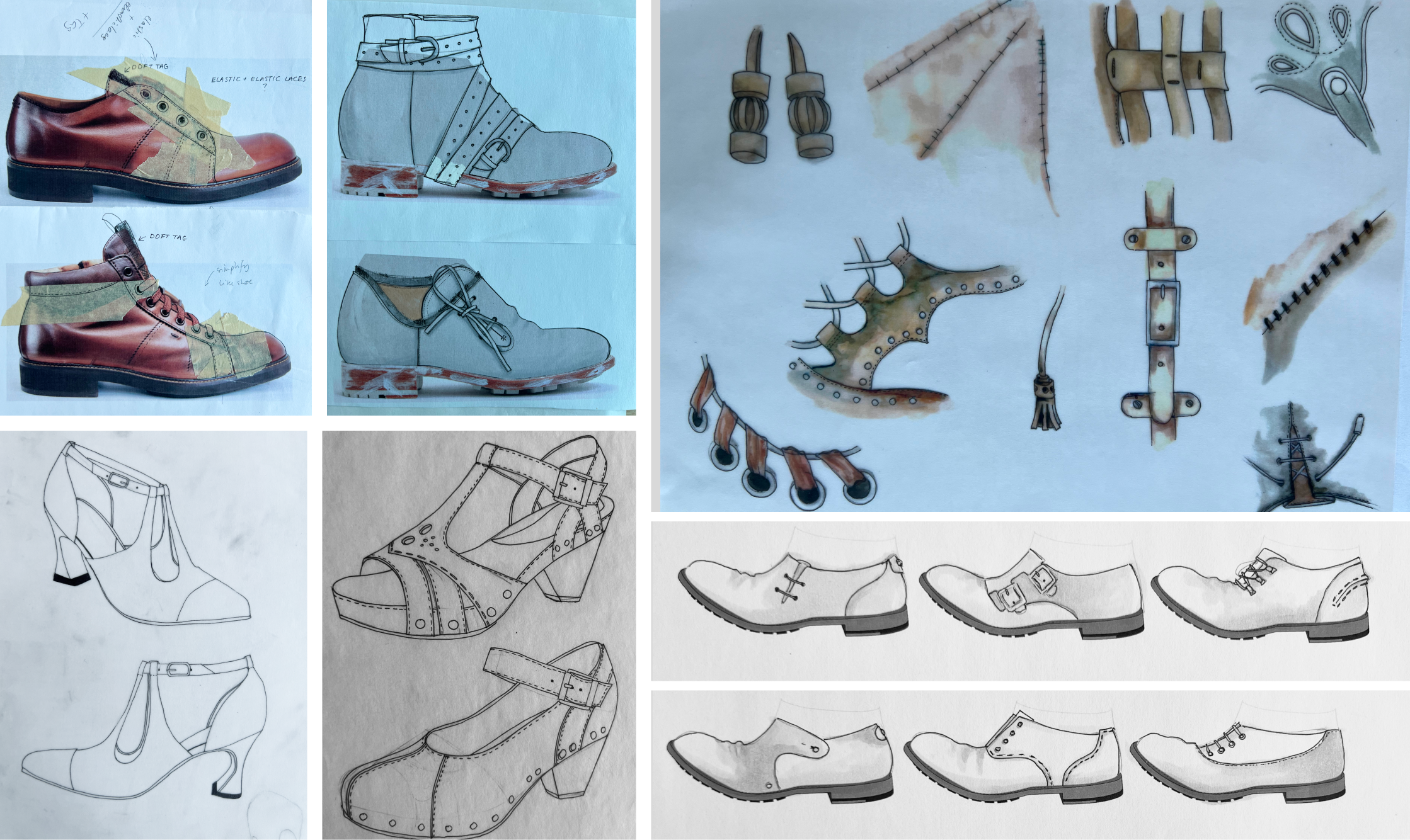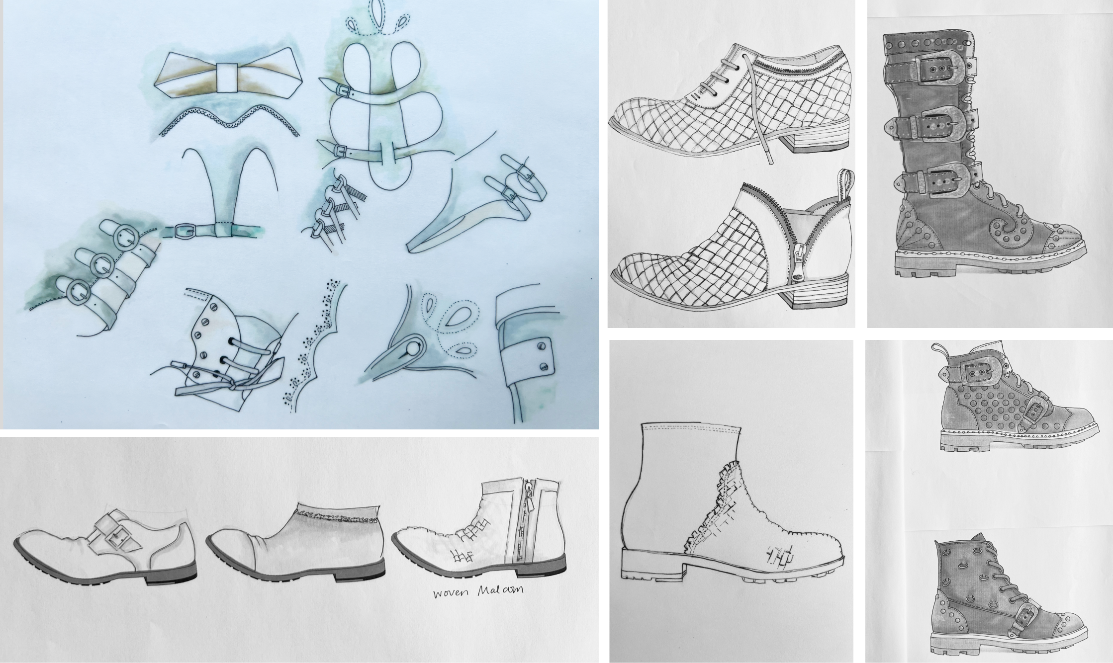 Hover over any image to read a detailed description of the product.Updating an existing construction to make it fit the current market's aesthetic, adding a more edgy sole and changing the way the shoe is constructed to make it more contemporary.