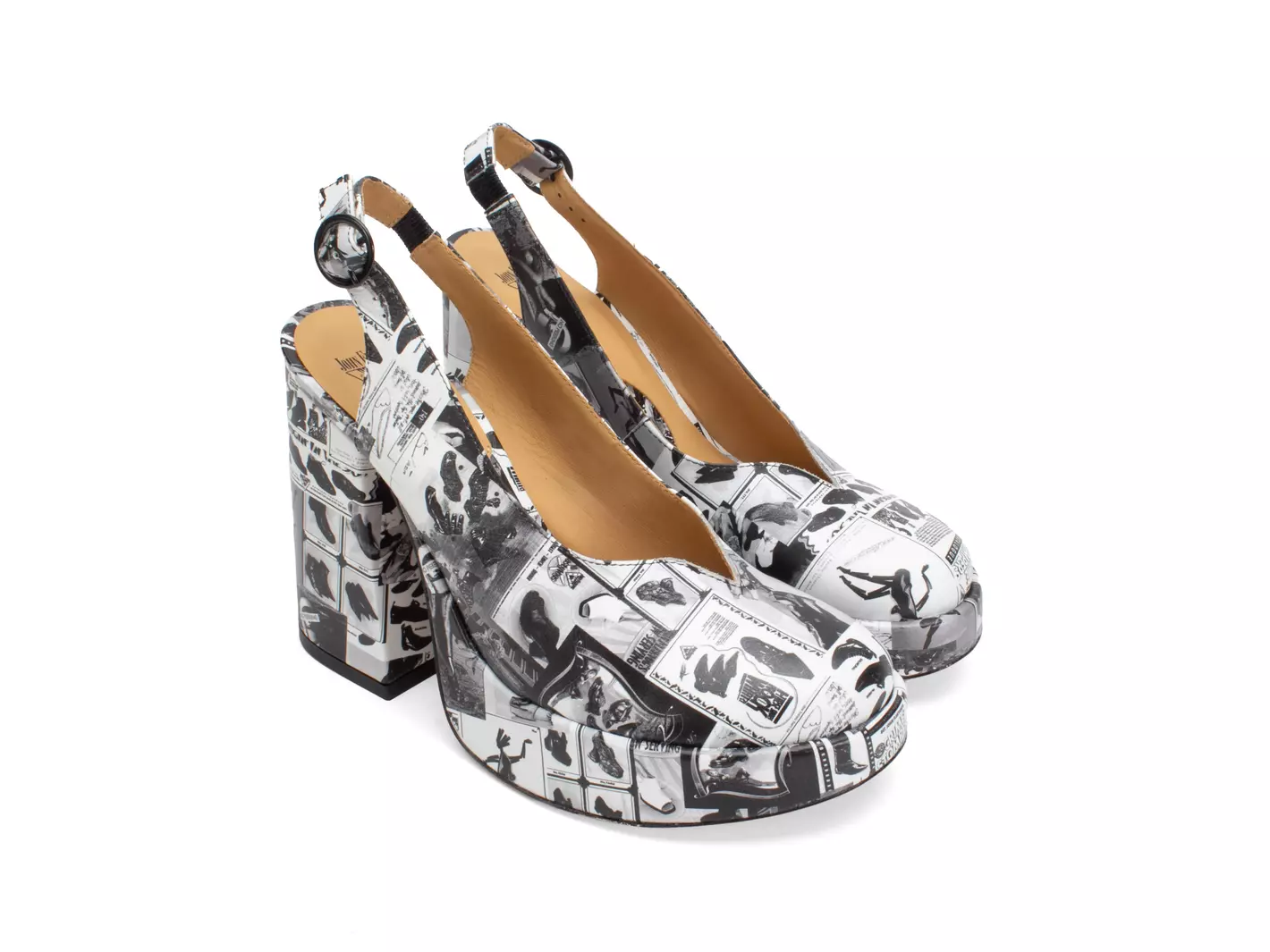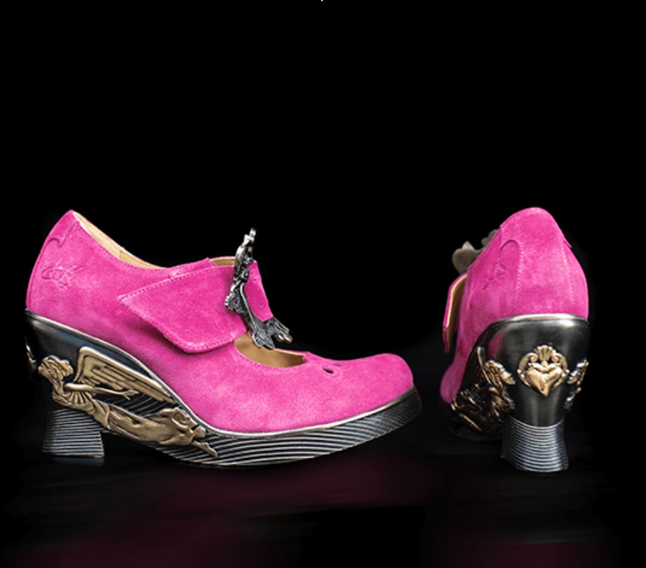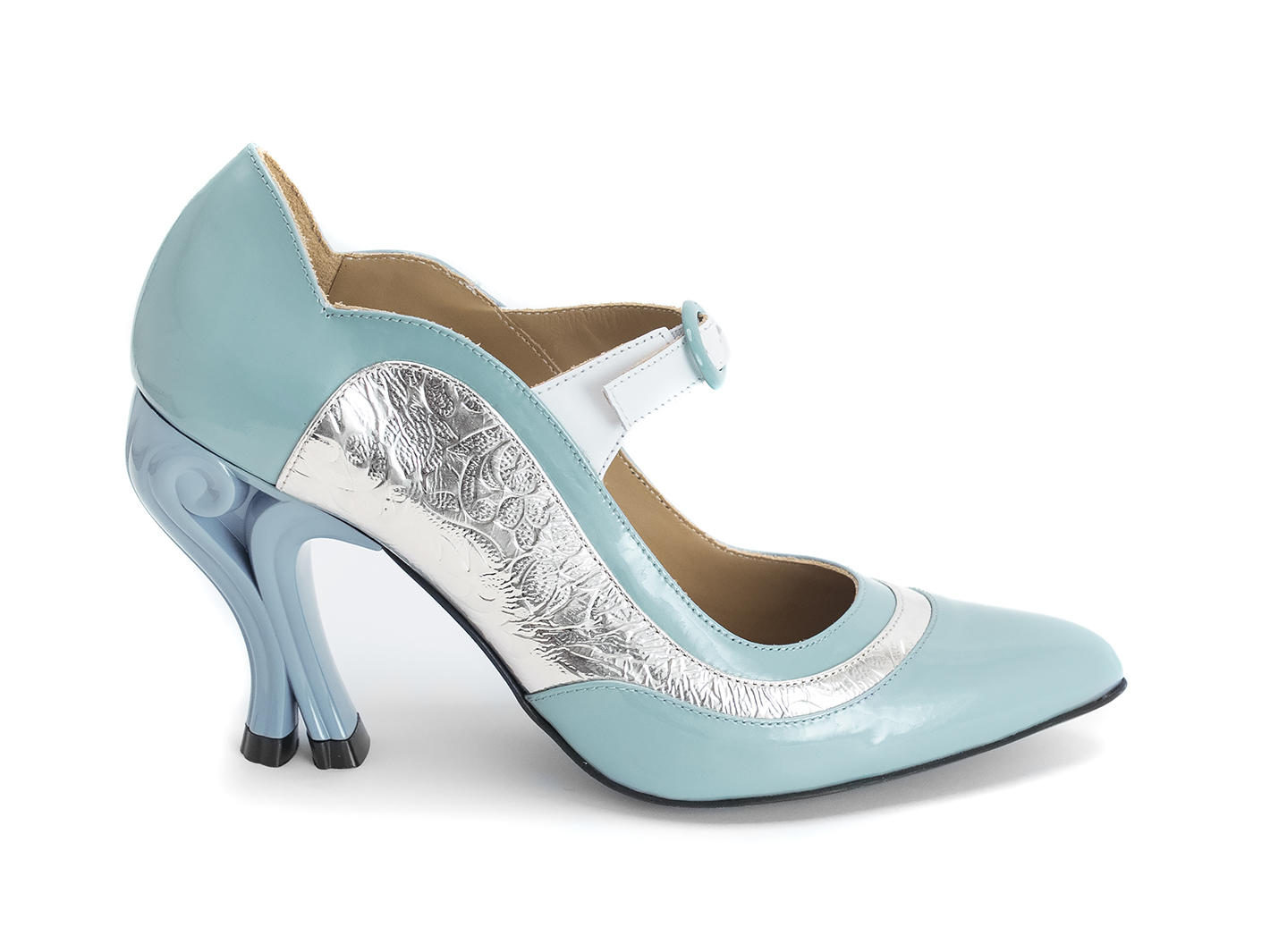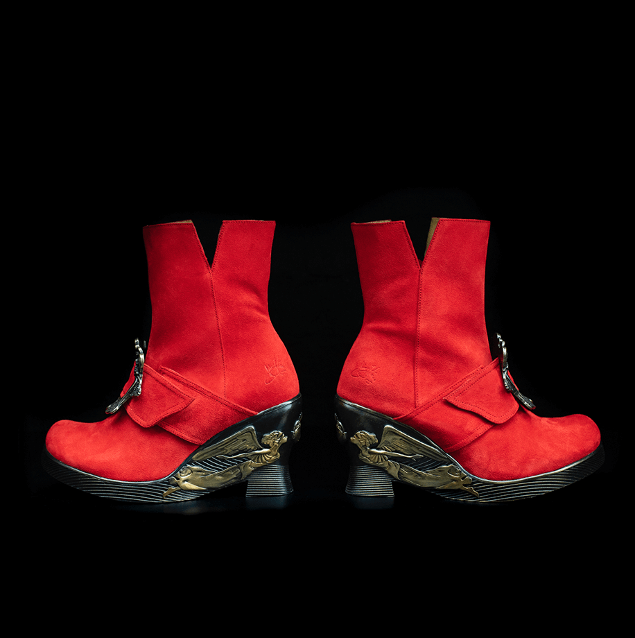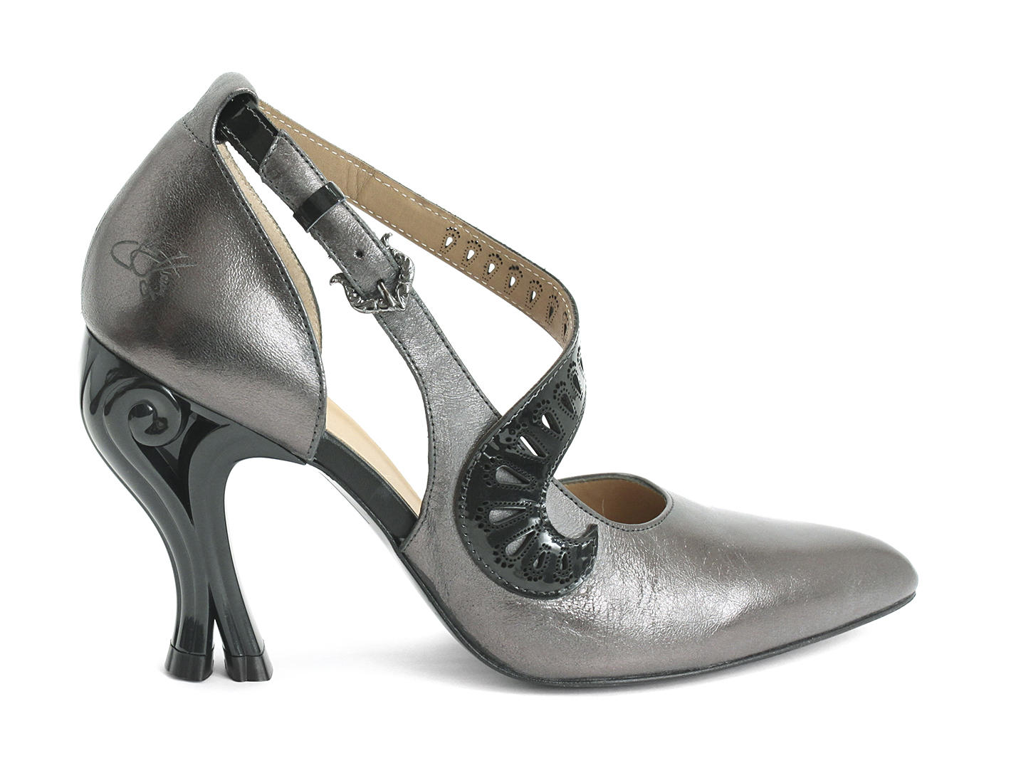 A classic high-heel made with a cemented construction, a four-inch scrolled heel that was developed and modeled in-house with our 3d design developer. All uppers follow a similar style direction.