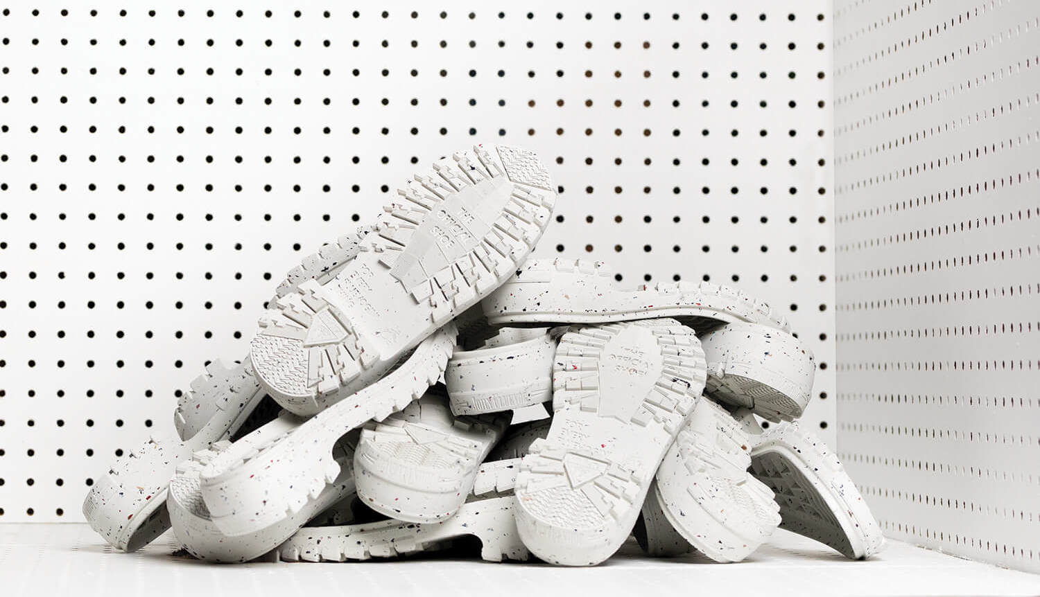 We developed a sole in Portugal to use an EcoRubber material that performs as well as synthetic rubber but utilizes 70% recycled material. This shoe also has a 20% recycled OrthoLite® Hybrid™ moulded insole for additional comfort.