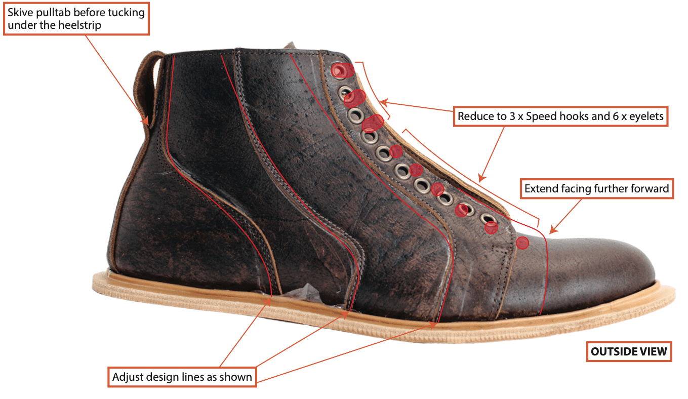 Updating an existing construction to make it fit the current market's aesthetic, adding a more edgy sole and changing the way the shoe is constructed to make it more contemporary.