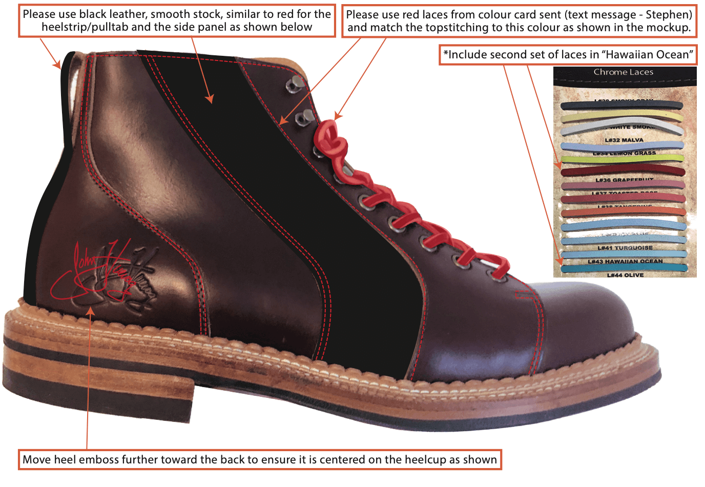Hover over any image to read a detailed description of the product.Updating an existing construction to make it fit the current market's aesthetic, adding a more edgy sole and changing the way the shoe is constructed to make it more contemporary.